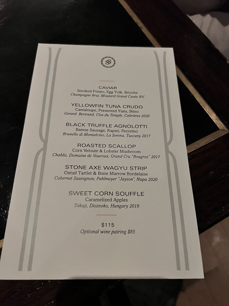 Bone Marrow...$11 Seared Foie Gras...$19 Butter Poached Crab...$24 Oxtail Marmalade...$12 Seared Scallops...$24 King Crab Leg...$64